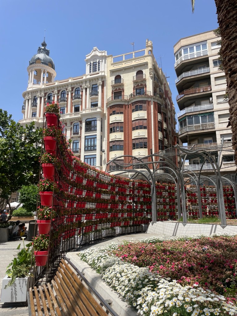 A collection of red and white pots in Murcia. This is actually the second time I’ve come across these pots. I was in Murcia to get my hair done which took a quicker than I expected so I decided to go for a walk around the city. The first time I came across these was way back in March at night. They are randomly arranged and after stopping for about 10 minutes walking around them we came to the realisation that they in fact do not spell anything. Even if they did I’m not sure if my Spanish would’ve been strong enough to crack the code.